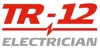 Logo for TR-12 Electrician, featuring red text 'TR-12' with a lightning bolt design and gray 'ELECTRICIAN' text underneath.